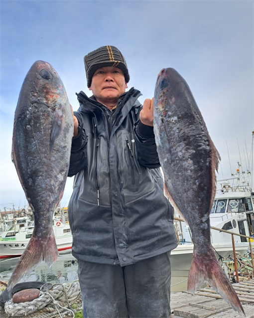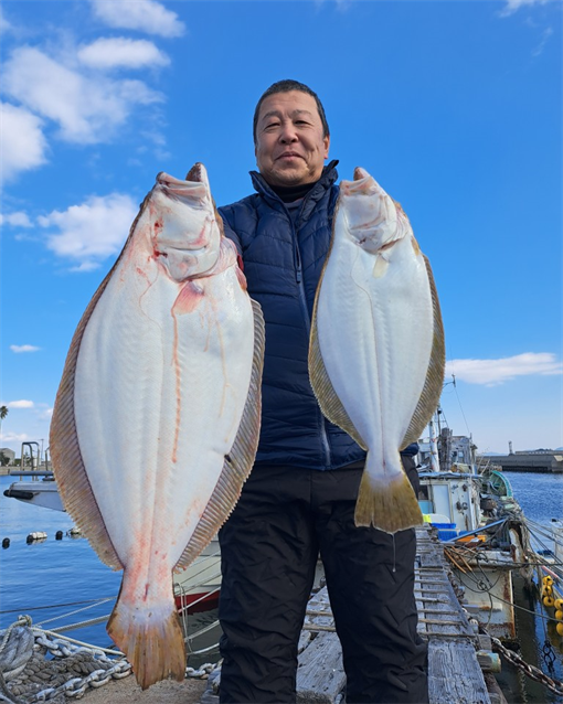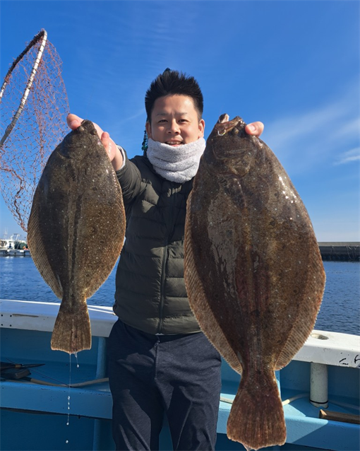 釣り女子さん 座布団ヒラメ2匹 お見事でした